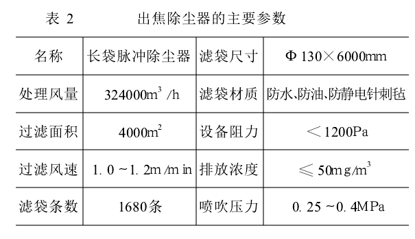 表3干熄焦、篩焦樓及轉(zhuǎn)運站地而除塵器的主要參數(shù)
