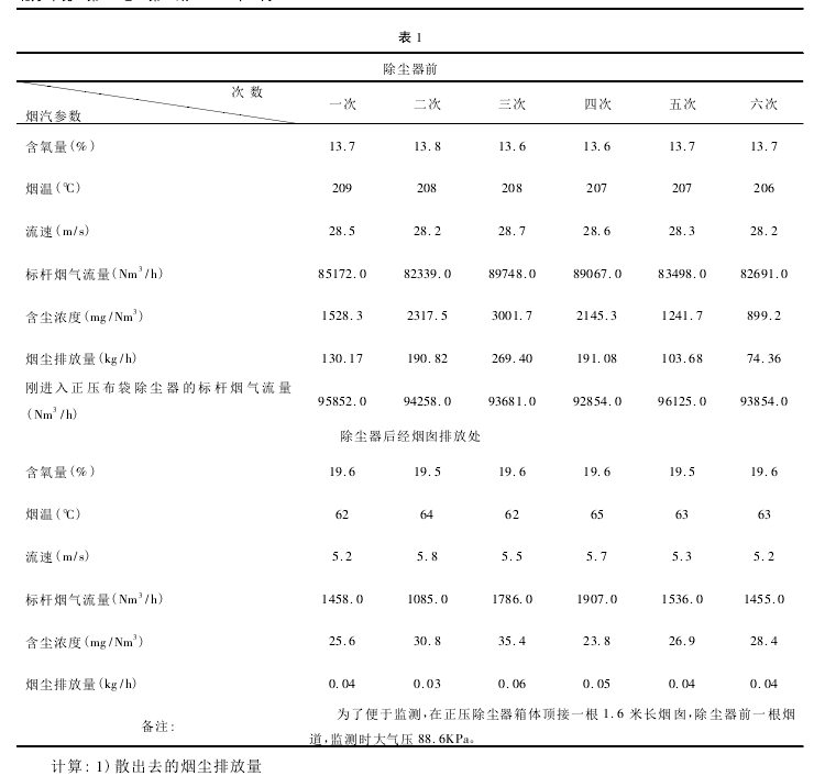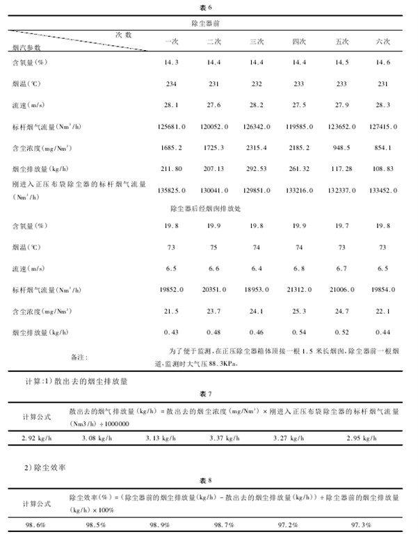 通過比較正壓布袋除塵器和負壓布袋除塵器的六組排放量,可以得出結(jié)論: 正壓布袋除塵器監(jiān)測和計算的結(jié)果與負壓布袋除塵器準確監(jiān)測結(jié)果基本相同,誤差很小,所以這種方法可行。