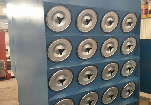 濾筒在除塵器中的布置很重要,既可以垂直布置在箱體花板上,也可以傾斜布置 在花板上,從清灰效果看,垂直布置較為合理?;ò逑虏繛檫^濾室,上部為氣箱脈沖室。在除塵器入口處裝有氣流分布板。上面一排濾筒會首先脈沖反吹,然后控制儀選擇下一排重復脈沖反吹過程。此后此控制儀會順序繼續選擇其他濾筒進行脈沖反吹操作。采用濾筒斜裝結構,因而除塵器在工作過程中同步清灰效果好。.濾筒傾斜抽屜式安裝,可使濾筒拆換更方便,而且除塵器本內部不設置傳動部件。對一般性粉塵,濾筒可長期使用不需要更換,省去了常用袋式除塵器需經常換洗濾袋的繁瑣工作,并節省了大量的維修費.應用于水泥、鋼鐵、電力、食品、冶金、化工等工業領域,整體容量增加數倍,是解決傳統除塵器對細粉塵收集難、過濾風速高、清灰效果差、濾袋易磨損破漏的問題。