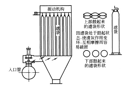 雖然各制造廠生產的閥門不_相同,但從應用的功能看,有如表所列的一些類別。根據使用閥門的目的,有的要求其密封性能良好,有的則要求它能保持規定的位置不變。如圖所示,由于振動式清灰的換向閥門密封性能不好,而使清灰效果不佳并助長了濾袋的破損。因為反吹閥門的密封性不良,也使清灰效果變壞。