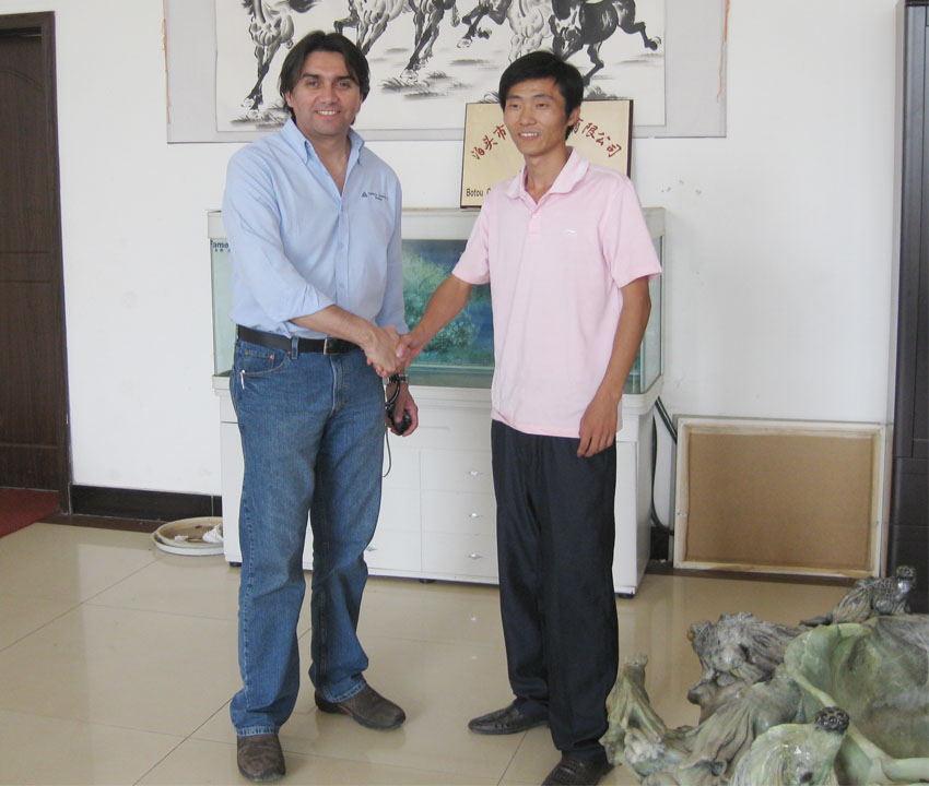 智利客戶在采購除塵骨架及配套除塵布袋后,與康潔環保領導人合影留念,祝賀:合作成功。 |