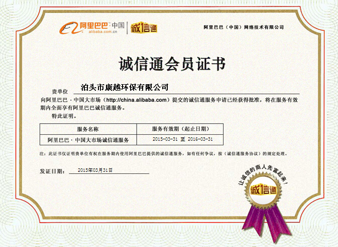 熱烈慶祝泊頭市康越環保有限公司在阿里巴巴網站上線并通過第三方認證,阿里站域名http://btkycc.1688.com。此舉標志著康越公司對網絡銷售翻開了一個新篇章,也預示著公司在網絡銷售與實體生產進入一個新格局